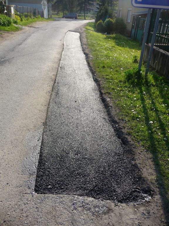 Proto jsme přivítali možnost požádat o dotaci ze Středočeského fondu rozvoje obcí a měst z rozpočtu Středočeského kraje. Dotaci jsme dostali a tak se spoluúčastí obce mohla být komunikace opravena v celé délce 748 m.