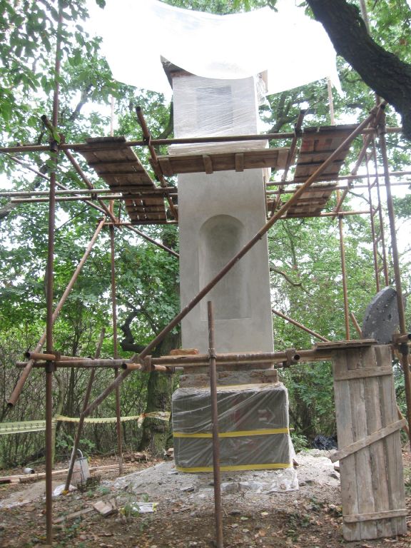 V r.2014 se nám povedlo získat další dotaci, tentokrát ze Středočeského fondu kultury a obnovy památek a mohly tak proběhnout restaurátorské a kamenické práce. Další fází pak byla úprava okolí, instalace směrových tabulí, informačního panelu a lavičky.