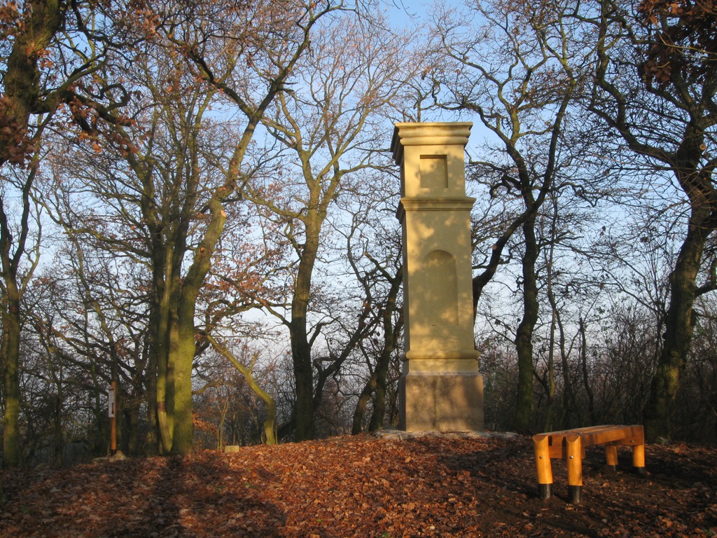 Na vrcholku kopce byl až donedávna ukrytý zděný sloup, na kterém se podepsal zub času natolik, že nebýt okolního křoví a stromů, byl by se nejspíše už zhroutil a rozpadl. A přitom to není jen nějaký obyčejný sloup ale 3,5 m vysoký podstavec pro sochu sv.Salvátora. Samotná socha se bohužel nedochovala. Podstavec je součástí chráněného souboru památek při staré poutní cestě vedoucí z Tuchoměřic na Okoř či později ke kapli Nalezení sv.Kříže v Malých Číčovicích a zahrnuje kromě podstavce ještě umělou jeskyni sv.Františka a kříž a v k.ú.Tuchoměřice je to pamětní kříž a podstavec sochy Panny Marie Immaculaty.